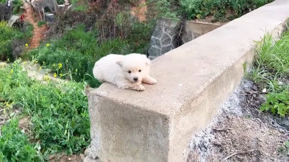 While jogging one day, a kind-hearted man came across a small stray puppy trembling on a bridge pier. The pup, resting his head on his paws, gazed into the distance with a pensive expression that spoke of loneliness and fear.